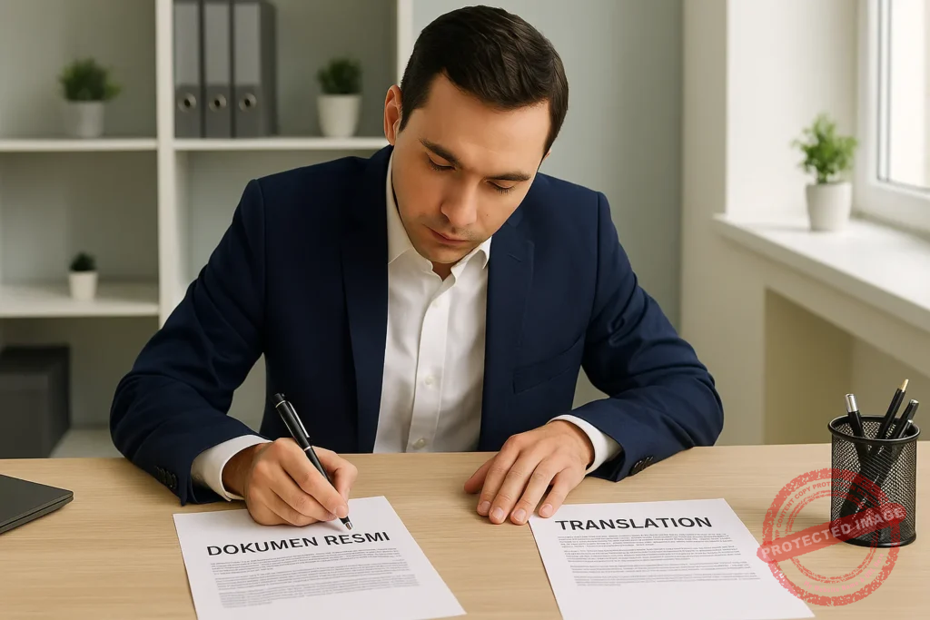 Selalu periksa apakah penerjemah memiliki sertifikat resmi dan terdaftar di lembaga pemerintah. Anda dapat meminta nomor lisensi atau melihat contoh stempel resmi pada hasil terjemahan.